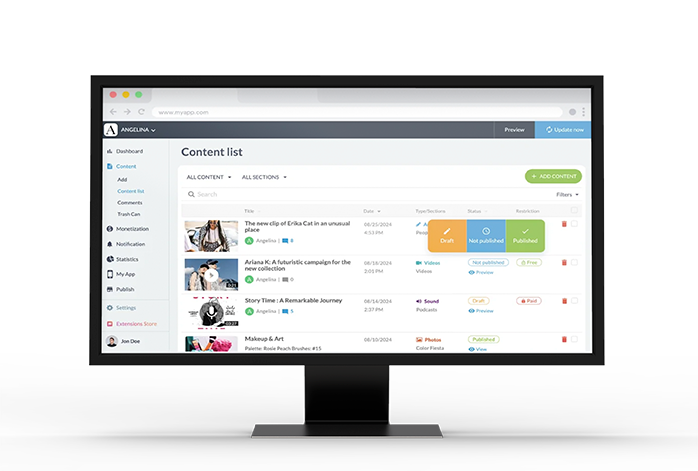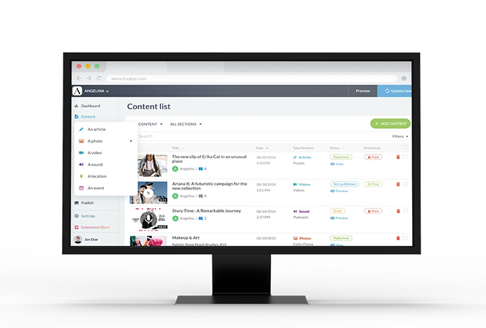 Tanto si está administrando una aplicación de contenidos como de comercio electrónico, gestione sus productos, artículos y páginas sin esfuerzo.