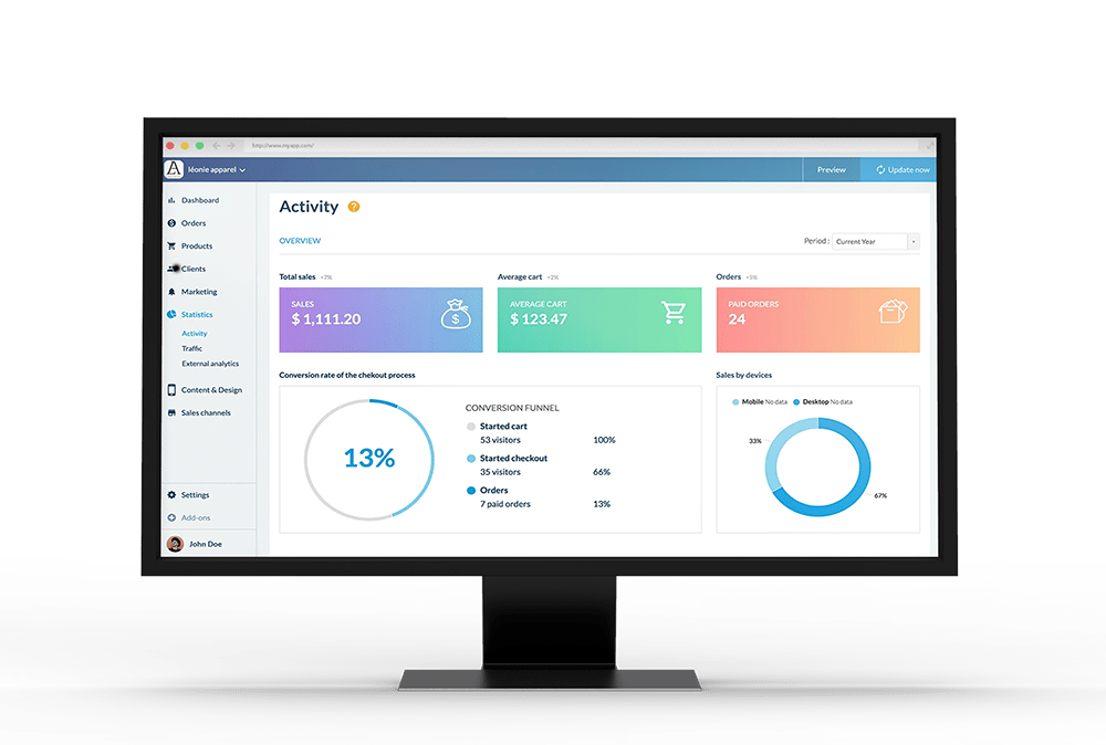 Gestiona stocks, pagos seguros y promociones, al tiempo que optimizas tus conversiones con estadísticas detalladas.