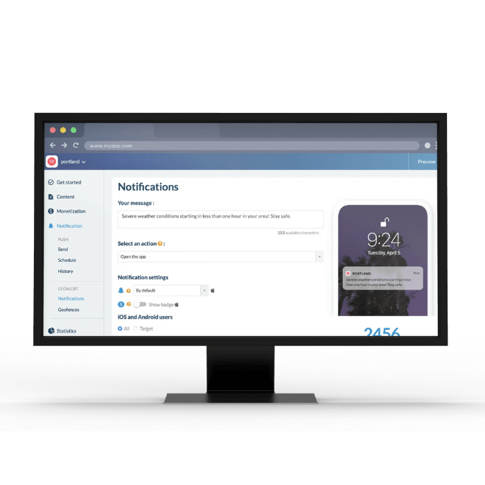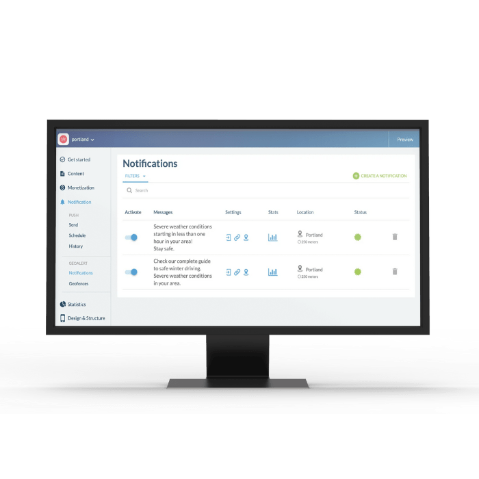 Geofencing Define las áreas geográficas donde se enviarán las notificaciones automáticamente a tus usuarios. Geofencing Define las áreas geográficas donde se enviarán las notificaciones automáticamente a tus usuarios. ¿Qué es geofencing? Una área geográfica = una notificación automatizada. Envíe notificaciones automáticas al ingresar o salir del área geográfica designada, mientras usas tu aplicación. Crea geofences áreas de interés Envíe notificaciones automáticas al ingresar o salir del área geográfica designada, mientras usas tu aplicación. Asigna notificaciones Mensajes automatizados. Para cada geofence y de acuerdo con la configuración de destino, crea un mensaje y define una estrategia de entrega mientras usa tu aplicación. Supervisa la entrega Escritorios todo-en-uno. Visualiza rápidamente las notificaciones automatizadas y sus configuraciones. Abre la lista de geofences y su ubicación. Estadísticas Analiza el rendimiento. Sigue el rendimiento de tus notificaciones y mejora la relevancia de tus mensajes en función de los resultados.